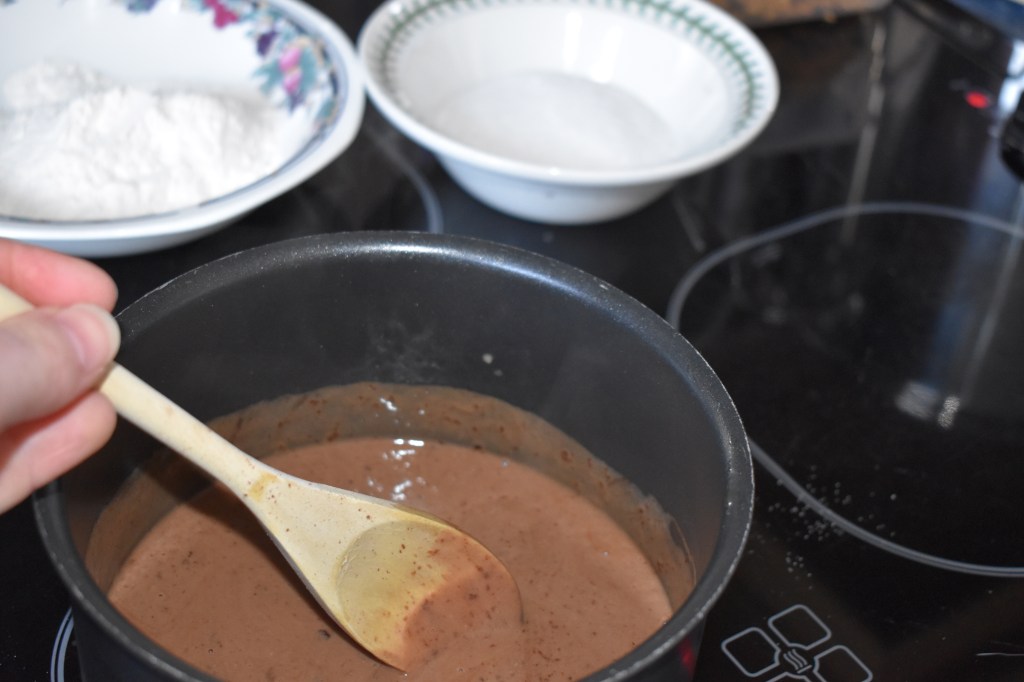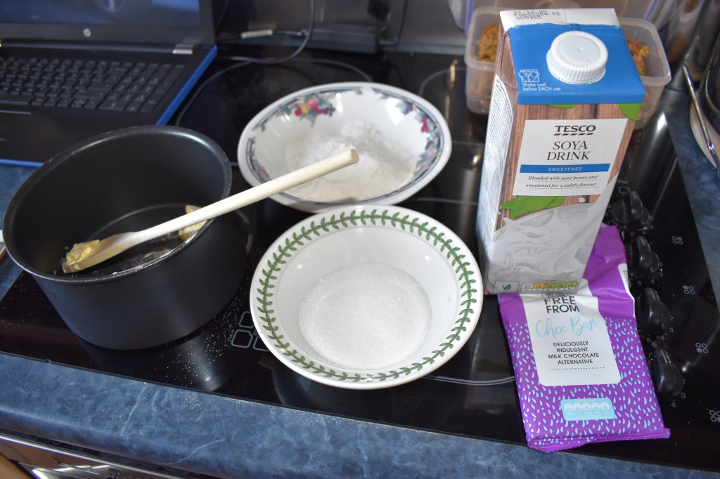 First I melted the butter and chocolate together with the Soya milk and lemon juice