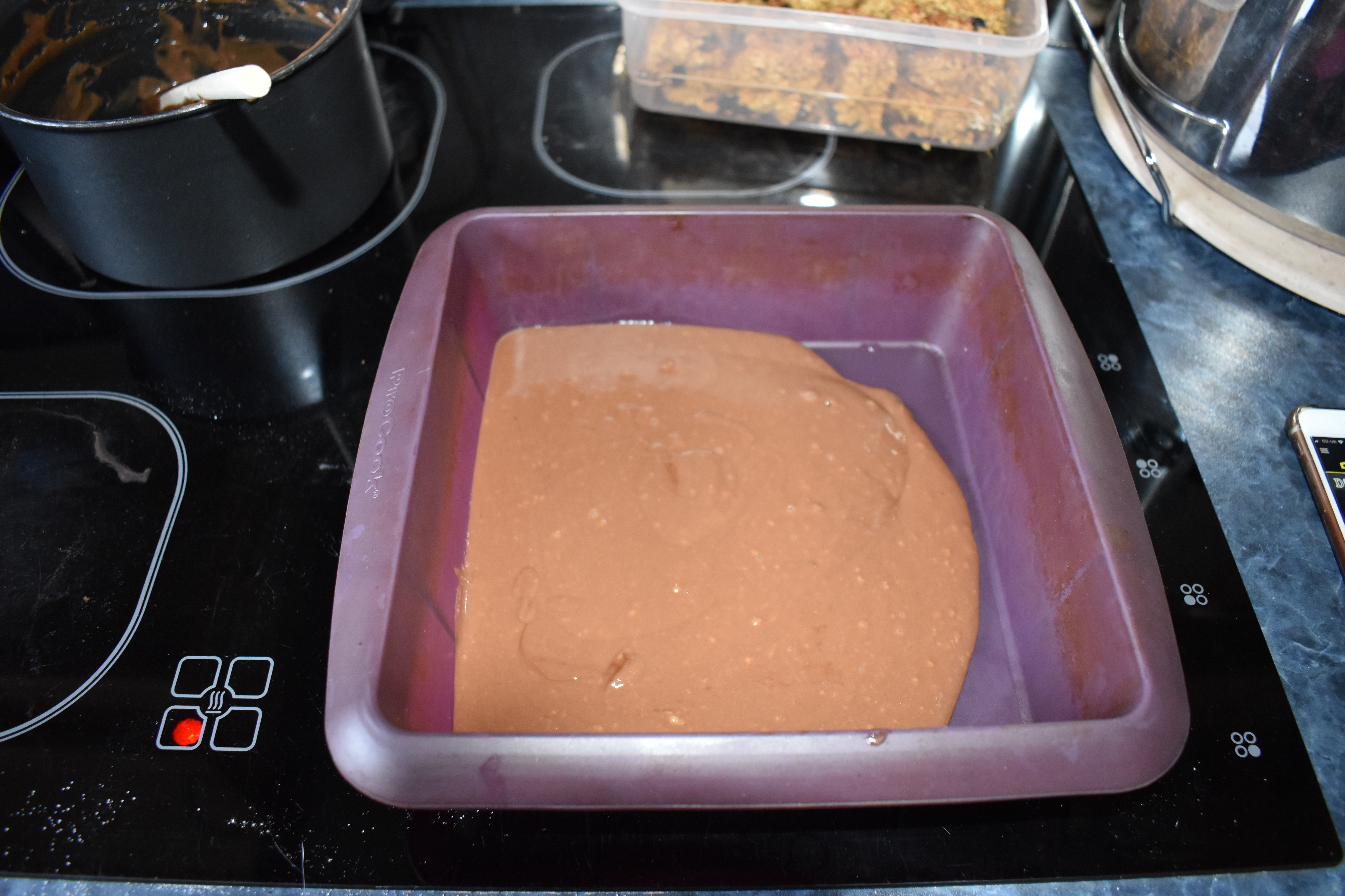 Then added all the dry ingredients (flour, sugar, salt) and poured it into my baking tray