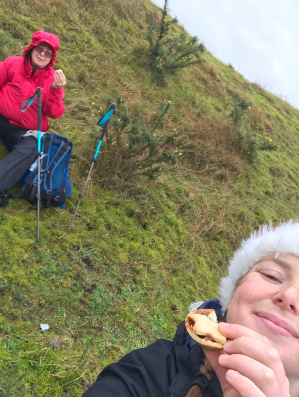 Mum and I met for a morning hike around the Gordano Round which our local national public footpath. We took some mince pies and some shortbread to begin depleting the pile, as well as a cuppa tea for when we arrived at cadbury camp