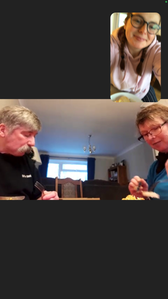 In the spirit of 2020 and trying to keep things normal, I collected my leftovers and took it back to wills house to heat up and then eat with Mum and Dad over face time