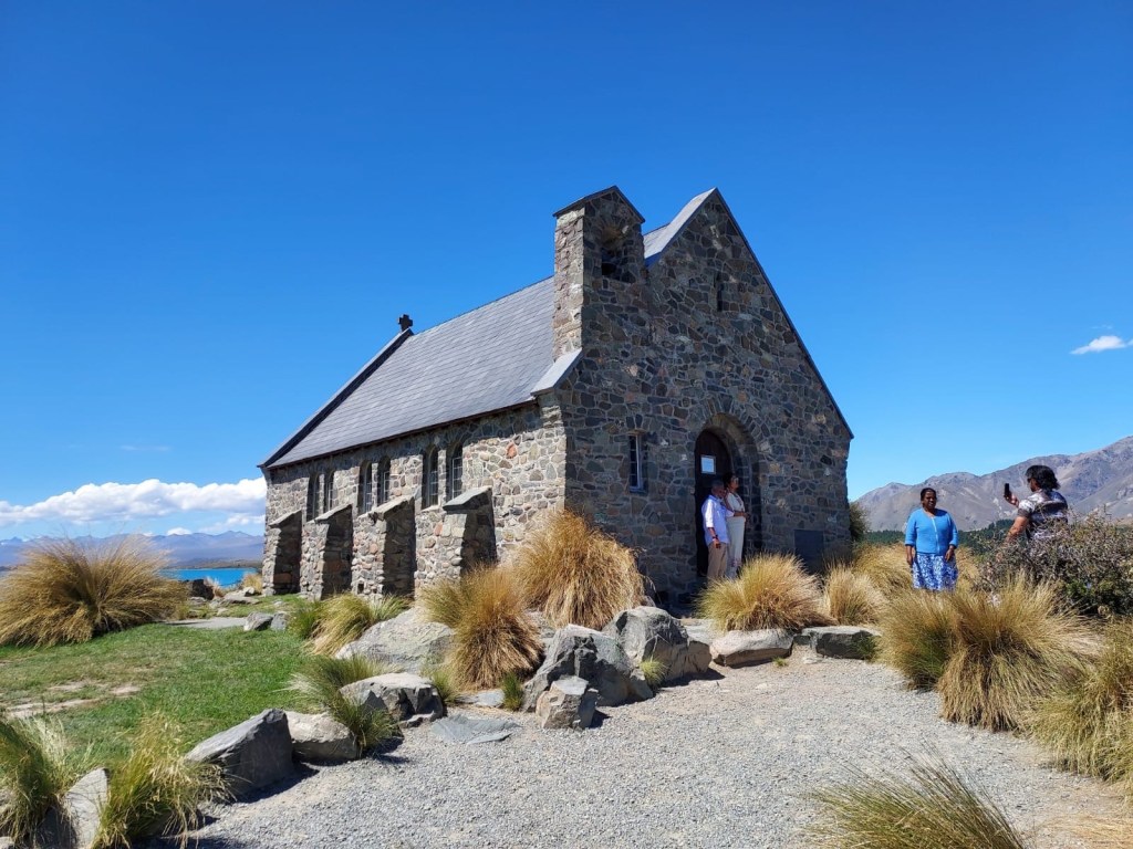 Lake Tekapo was the first rest stop along the way and what a beautiful place to stop for a coffee and a wander.