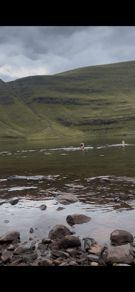 Our walk took us to Cwar-du-mawr, Picws du cairn , Bwlch Blaen-Twrch, Fan Foel, Twr Y Fan Foel and Bwlch Giedd, before we decided to follow the track back down to Llyn Y Fan Fawr for another wild swim. It felt chillier on this occasion, we think because it was less humid and more breezy. We still enjoyed a swim, soaking up the scenery and enjoying how peaceful of an experience it was.
