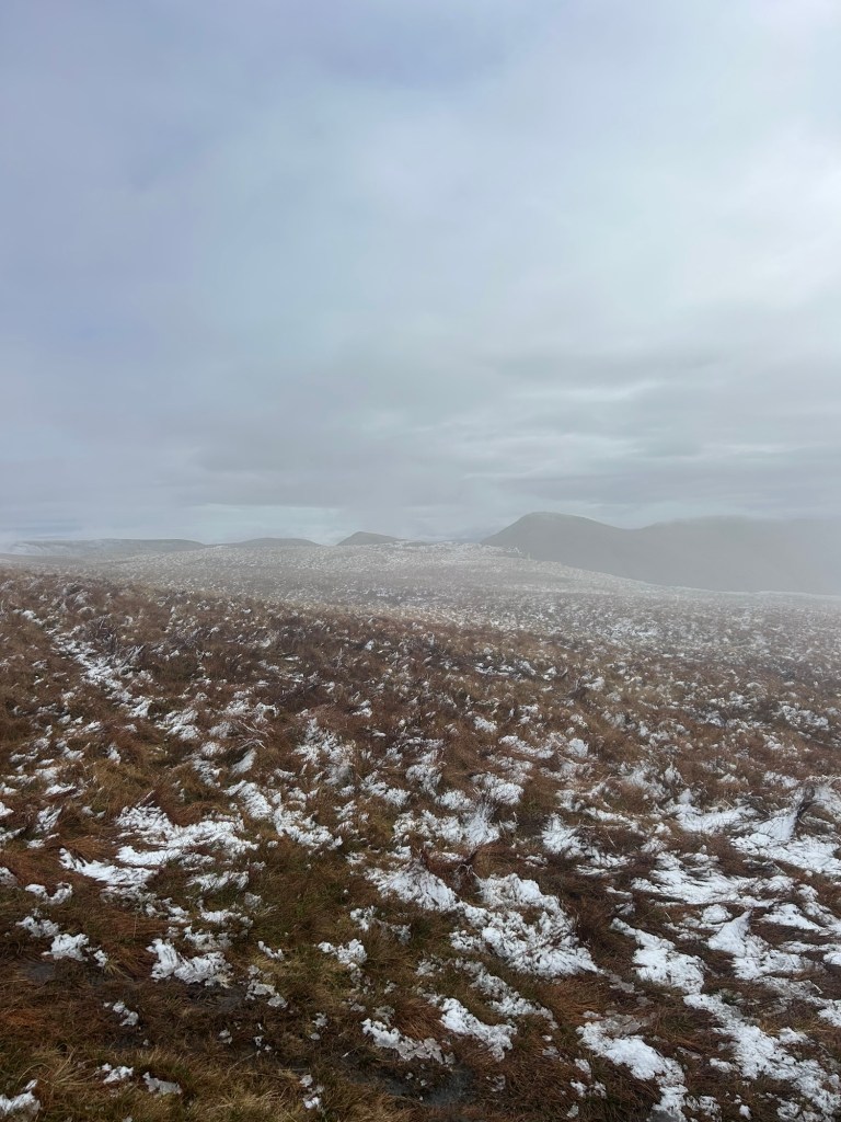 From here, we could see the cloud sitting in the valleys, and also the snow that had appeared on some of the higher fells.